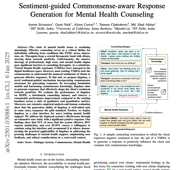 In a world where the need for mental health support is ever-growing, innovative solutions that enhance the quality and effectiveness of counseling are highly sought after. Dr. Alison Cerezo, SVP of Research at mpathic, in collaboration with esteemed colleagues Dr. Aseem Srivastava, Gauri Naik, Dr. Md Shad Akhtar from IIIT Delhi, India, and Dr. Tanmoy Chakraborty from IIT Delhi, India, have developed “EmpRes”. This groundbreaking research introduces advanced solutions to enhance therapeutic effectiveness and accessibility.