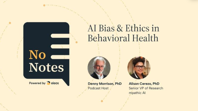 In a recent episode of Eleos Health’s No Notes, hosted by Dr. Denny Morrison, mpathic’s Dr. Allison Cerezo, SVP of Research at mpathic, shared their expertise on AI, bias, and ethics in behavioral health. With a background in clinical psychology, academia, and community organizing, Dr. Cerezo highlighted the importance of building equitable and ethical AI tools that support both providers and patients.